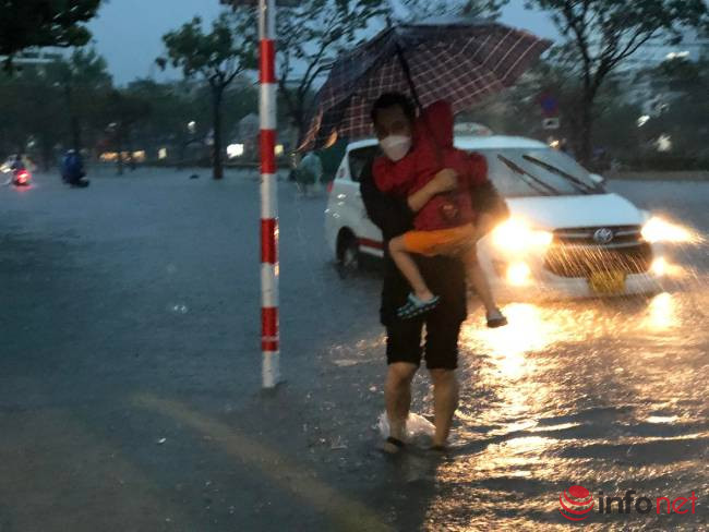 “Tôi xin nghỉ làm về sớm đến trường đón con nhưng không thể đi về nhà được, dù trường cách nhà không xa. Toàn bộ khu vực xung quanh nơi ở đều bị ngập sâu. Cuối cùng tôi đành tìm cách lái xe ô tô quay về cơ quan, sau đó bế con từ cơ quan đi bộ về”, anh Hải cho hay.