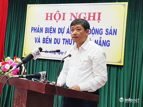 Phó Chủ tịch Thường trực UBND TP Đà Nẵng Đặng Việt Dũng phát biểu tại hội nghị phản biện xã hội đối với hai dự ánMarina Complex và Olalani Riverside Tower do Ủy ban MTTQVN TP tổ chức sáng 7/5 (Ảnh: HC) |