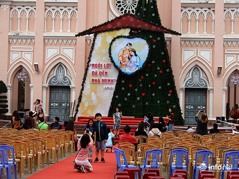 Du khách đến tham quan nhà thờ Chính tòa (Đà Nẵng) trong dịp Noel năm nay (Ảnh: HC) |