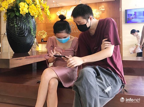 Ánh mắt rạng ngời của hai mẹ con du khách Hồng Kông vừa hoàn thành cách ly tại KS Vanda, chuẩn bị trở về nước. |