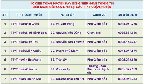 Sở Y tế Đà Nẵng đề nghị nhân dân, du khách khai báo trung thực nếu từng tiếp xúc với 02 bệnh nhân người Anh này trong thời gian và tại các địa điểm nêu trên. Đồng thời Sở Y tế Đà Nẵng mong muốn người dân, du khách hỗ trợ, phối hợp với cơ quan chức năng trong việc kiểm soát, phòng, chống dịch Covid-199 bằng cách thông báo chính xác, trung thực địa điểm di chuyển mới của 02 bệnh nhân người Anh mà chưa được liệt kê trong danh sách trên (nếu có), hoặc các trường hợp tiếp xúc gần với 02 bệnh nhân này thông qua số điện thoại của Trung tâm Y tế các quận, huyện.