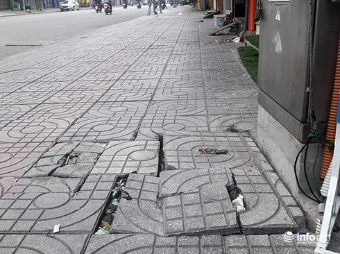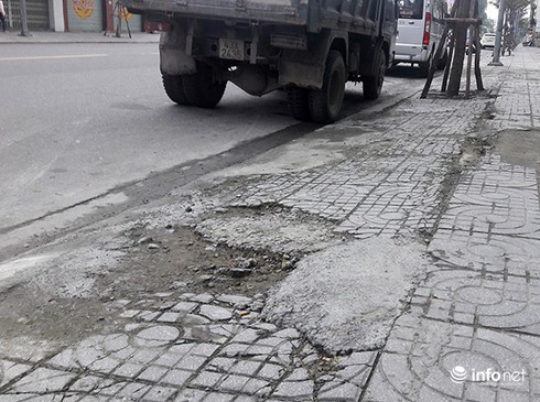 Vỉa hè bị bong tróc, |