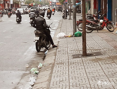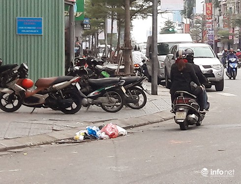 Rác vứt bừa bãi ngay dưới lòng đường |
