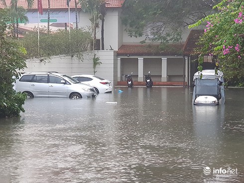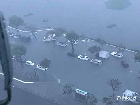 Đặc biệt, sáng 9/12, rất nhiều cư dân sinh sống ở Hoàng Anh Gia Lai Lake View Đà Nẵng đã phải kêu trời khi bãi đậu xe ô tô ở tầng hầm của khu chung cư cao cấp này bị ngập nước rất nặng. Hàng loạt xe ô tô, trong đó có nhiều xe hạng sang, đang đậu đỗ ở đây bị ngập nước lên tới nắp ca pô của xe.