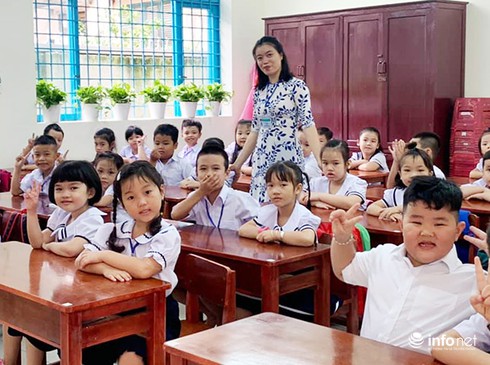 Cô trò trường tiểu học Tây Hồ (quận Hải Châu, Đà Nẵng) đầy hứng khởi bước vào năm học mới 2019 - 2020 (Ảnh: HC) |