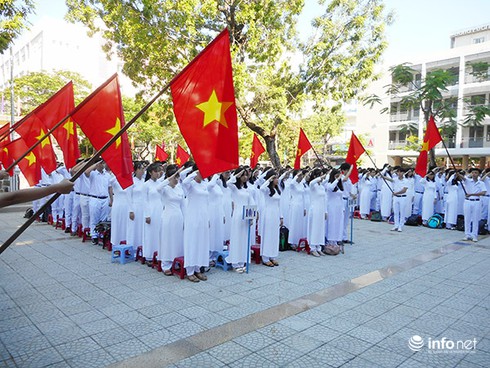 Trường THPT Phan Châu Trinh (Đà Nẵng) đón các em học sinh bước vào năm học mới 2017 - 2018 (Ảnh: HC) |