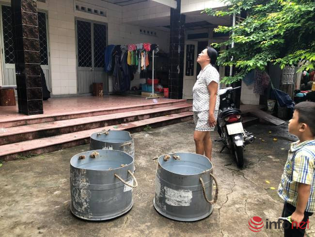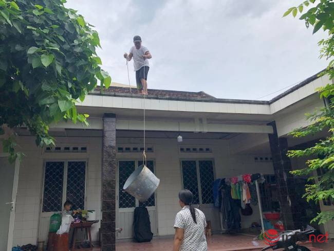 “Tranh thủ ngày hôm nay tạnh ráo nên chúng tôi chuẩn bị trước. Đây là những thùng nhựa hằng ngày để đựng cá, nay được sử dụng để đựng nước. Các thùng nước đặt trên mái nhà đề phòng bão thổi bay mái”, anh Thị nói.