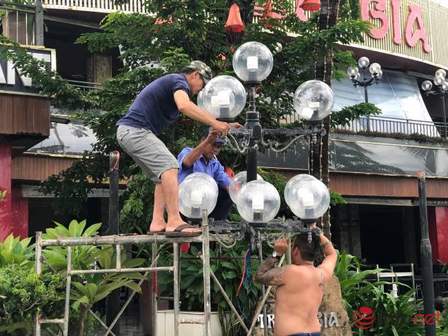 “Trong ngày hôm nay chúng tôi sẽ hoàn tất các công việc chuẩn bị như xúc cát, gia cố hệ thống cửa, cây xanh. Đến ngày mai khách sạn sẽ đóng cửa để tránh bão”, anh Thông nói.