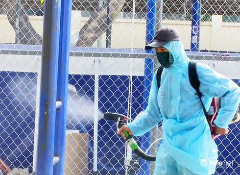 Trung tâm Y tế quận Ngũ Hành Sơn (Đà Nẵng) phun hóa chất Cloramin B khử khuẩn môi trường phòng chống dịch bệnh nCoV (Ảnh: Như Ý) |