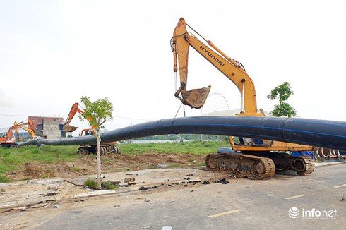 Dawaco thi công lắp đặt đường ống cấp nước vượt sông Hàn. |