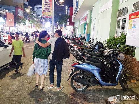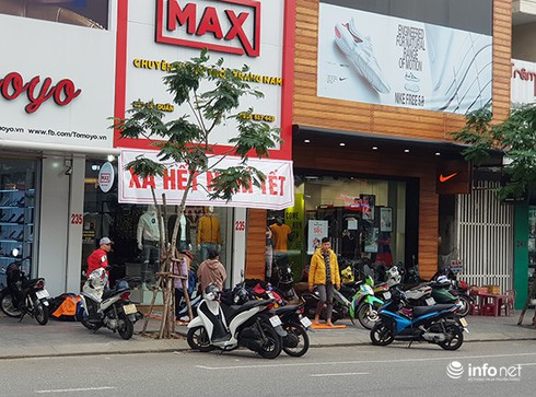 Do vậy, vào các thời gian cao điểm, nhất là từ 18h - 22h hàng ngày và các dịp lễ Tết, khách mua sắm tấp nập thì thường xảy ra tình trạng các cửa hiệu lấn chiếm tràn lan vỉa hè, lòng đường để xe máy.