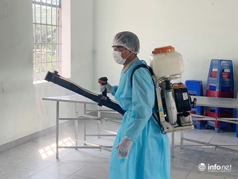 Nhà ăn của khu cách ly được phun thuốc khử trùng nhiều lần trong ngày |