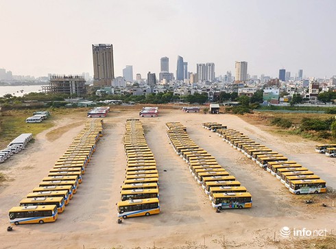Hàng loạt xe buýt, xe khách trên địa bàn Đà Nẵng đang tạm dừng hoạt động để phòng, chống lây lan dịch Covid-19(Ảnh: HC) |