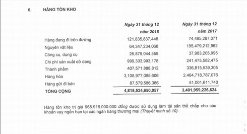 Cũng theo báo cáo, lượng hàng tồn kho của PNJ tăng mạnh lên hơn 4.815 tỷ đồng vào cuối 2018, từ mức 3.400 tỷ đồng hồi đầu năm.