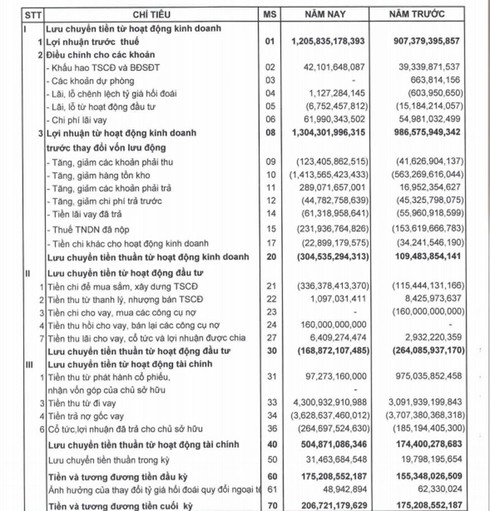 Một điểm đáng lưu ý là dòng tiền thuần từ hoạt động kinh doanh của PNJ bất ngờ âm 304 tỷ đồng trong năm 2018, thay vì dương 109 tỷ đồng như năm trước đó.