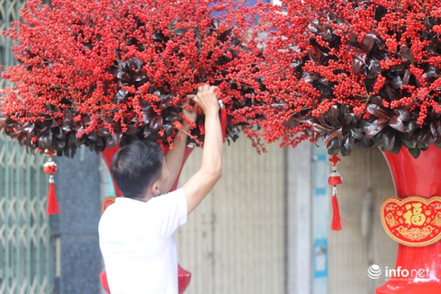 Chủ cửa hàng hoa tại TP.HCM cho biết, vì có quả mọng đỏ thắm nên đông đào đỏ được nhiều người lựa chọn chưng Tết với mong muốn màu đỏ của loại cây này sẽ mang đến cho gia chủ nhiều may mắn, sung túc.
