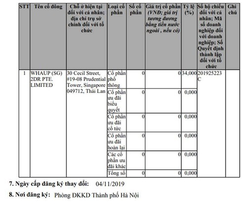 Thông tin trong báo cáo thay đổi cũng ghi nhận vốn nước ngoài trong doanh nghiệp chiếm 34% giống như thông báo của Sở GDCK Thái Lan và thông tin từ CTCP nước Aqua One của bà Đỗ Thị Kim Liên (Shark Liên) đưa ra trước đó.