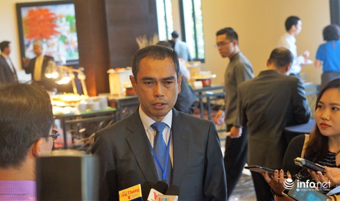 Đại sứ Malaysia tại Việt Nam trả lời phỏng vấn báo chí bên lề Hội thảo"ASEAN 4.0: Tinh thần doanh nghiệp trong thời đại cách mạng công nghiệp 4.0". Ảnh: Phan Nhung |
