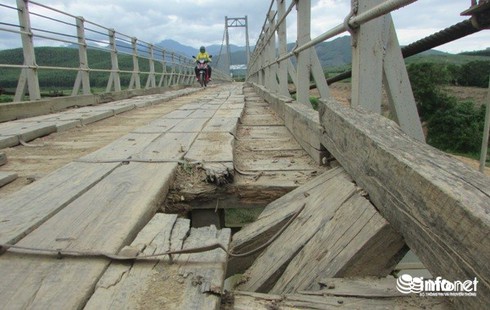 Tuy nhiên, một số đối tượng lại tiếp tục phá dỡ thanh sắt để tiếp tục chở quá tải trọng, do đó mặt cầu một số đoạn bị gãy một số thanh gỗ.