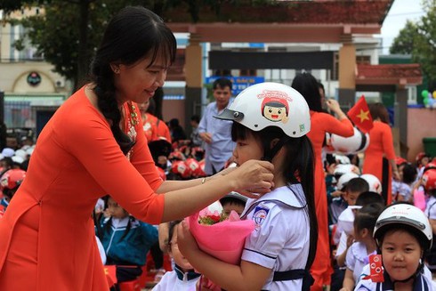 Tại buổi lễ, lãnh đạo Ban ATGT tỉnh Đắk Lắk cũng nhắc nhở các thầy cô giáo, các bậc phụ huynh thường xuyên đội mũ bảo hiểm cho các em, nhằm tạo ý thức tự giác chấp hành pháp luật ATGT cho các em từ nhỏ.