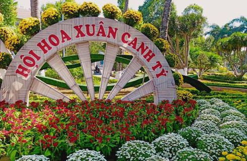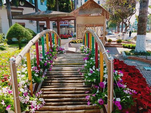 Ngoài ra, ở khu vực đường Nguyễn Tất Thành (khu vực gần ngã 6), các đơn vị đã bố trí nhiều hạng mục rất đẹp như vườn hoa, nhà tranh, cầu tre… để tô điểm thêm sắc màu, không gian Tết cổ truyền.