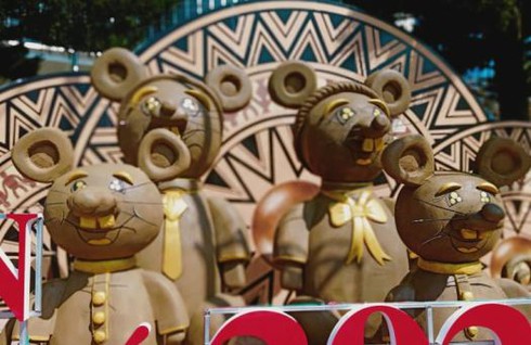 Đặc biệt, một “gia đình” chuột gồm 4 con, có hình dạng ngộ nghĩnh, đáng yêu đã được bố trí, dựng lên đầu đường Nguyễn Tất Thành, sẵn sàng chào đón năm mới Canh Tý.