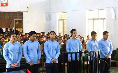 Các bị cáo trước vành móng ngựa. |