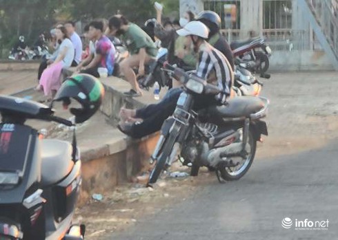 Theo ước tính, trong hơn 1km dọc bờ đập của hồ Ea Kao phải có đến vài trăm người cùng hàng chục chiếc xe máy, ô tô con đậu trên bờ đập.