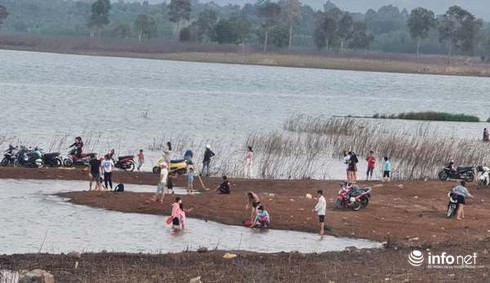 Rất nhiềungười, trong đó có cả trẻ em, tập trung tại hồ Ea Kao vào chiều ngày 1/4. |