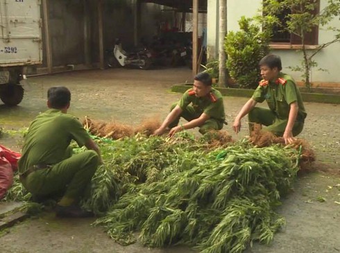 Công an đã nhổ bỏ toàn bộ số cây cần sa trồng trái phép |