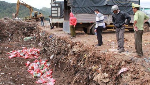 Cơ quan chức năng thực hiện công tác tiêu hủy phân bón hết hạn và kém chất lượng. |