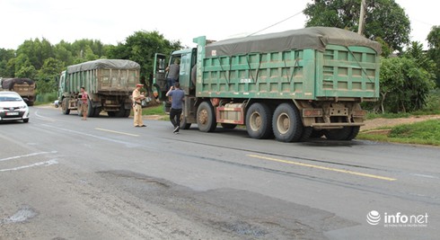 Cũng theo nguồn tin này thì những chiếc xe 3 - 4 chân (giàn lốp, mỗi bên (trái/phải) xe có bao nhiêu giàn lốp là có bấy nhiêu “chân”-PV) nói trên có hiện tượng quá tải rất nhiều, tuy nhiên điều đáng nói là cả tháng nay lực lượng chức năng không hề xuất hiện.