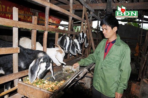 Tiểu dự án nuôi dê tại xã Thuận Hà đã giúp nhiều hộ dân tăng thêm thu nhập. Ảnh: Kim Ngân |
