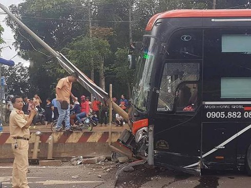 Sau đó, chiếc xe tiếp tục tông gẫy cột điện cao áp. Cuối cùng, chiếc xe gặp nạn dừng lại khi tông tiếp vào dải phân cách cứng bằng bê tông. Vụ tai nạn đã khiến hàng chục hành khách trên xe được một phen hoảng loạn, nhưng rất may đã không có thiệt hại về người.