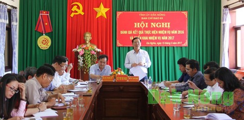 Theo thông tin từ cổng thông tin tỉnh Đắk Nông cho biết, ngày 15/3, Ban Chỉ đạo chống âm mưu “Diễn biến hòa bình” trên lĩnh vực tư tưởng-văn hóa của Tỉnh ủy (Ban Chỉ đạo 63) tổ chức Hội nghị đánh giá kết quả thực hiện nhiệm vụ năm 2016, triển khai công tác năm 2017.