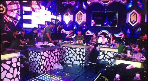 Công an thị xã Gia Nghĩa kiểm tra tại một quán karaoke trên địa bàn. |