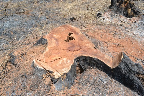 Nhiều cây to bị đốn hạ và đốt cháy |