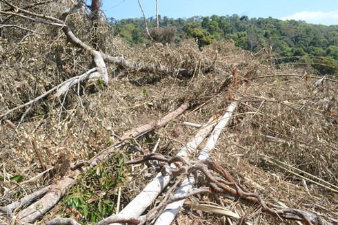 Rừng bị phá trắng hoàn toàn, dấu vết còn mới nguyên |