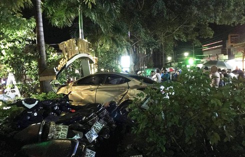 Do bị bất ngờ, nên nhiều người tại bãi gửi xe không chạy kịp, bị xe tông trúng, sau đó xe ô tô này tiếp tục lao về phía trước tông vào cổng của quán cà phê rồi mới dừng lại, xe bị móp méo phần đầu, hàng loạt xe máy của khách uống cà phê bị ngã đổ, hư hỏng.