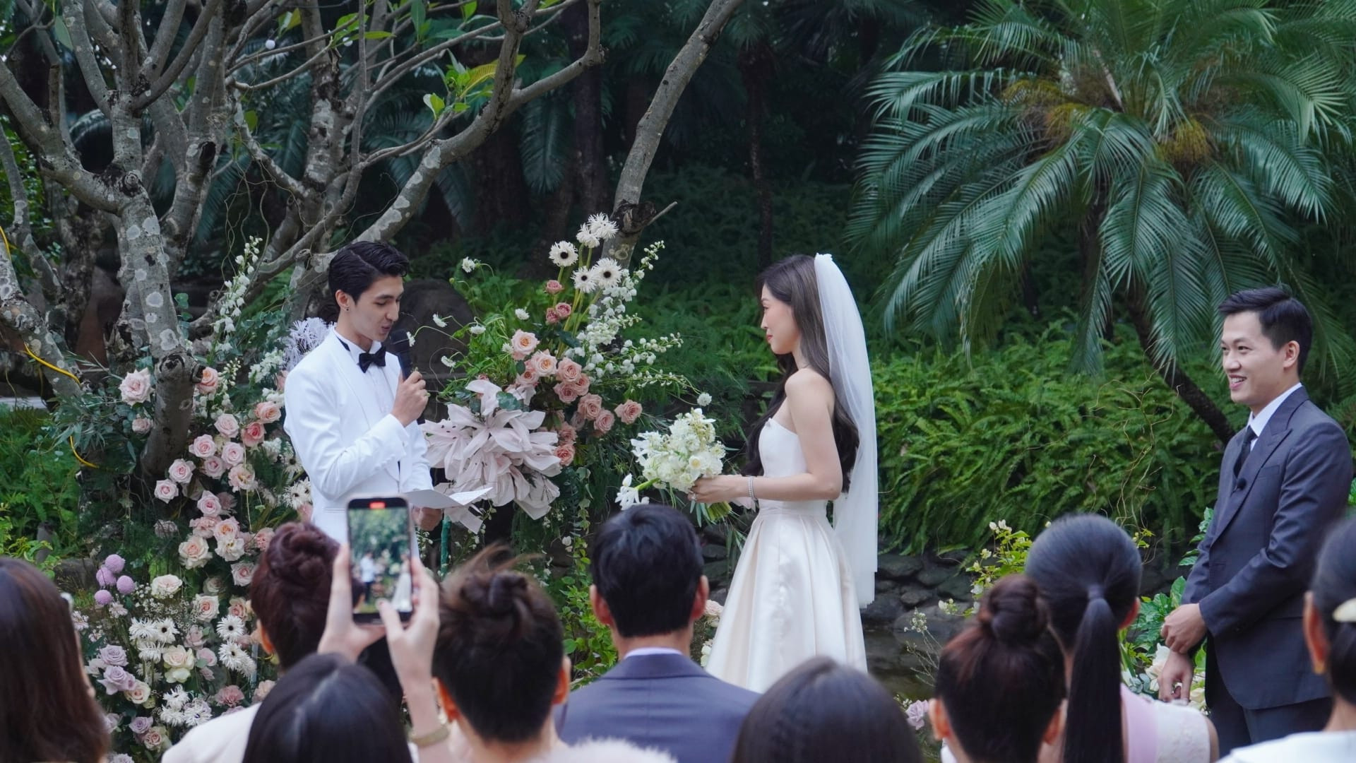 Trong không gian lãng mạn, nhẹ nhàng của buổi lễ, Bình An - Phương Nga đã trao nhau những lời tuyên thệ vô cùng ngọt ngào về tình yêu và tương lai của cả hai. Đặc biệt, trước những tâm sự của chồng, nàng hậu đã không nén nổi những giọt nước mắt hạnh phúc.