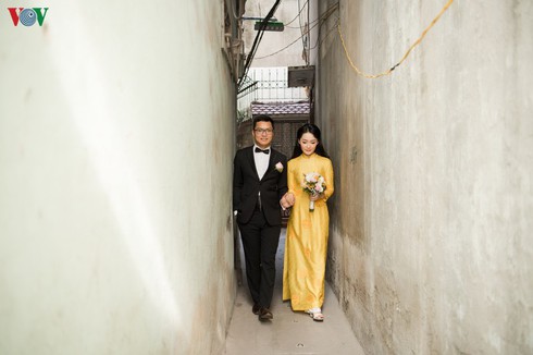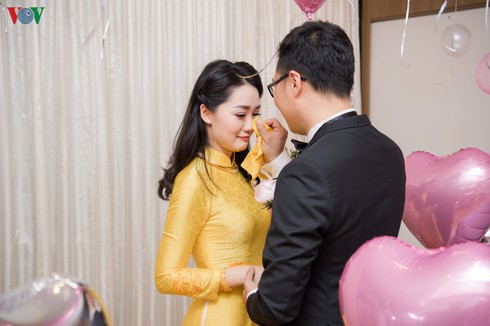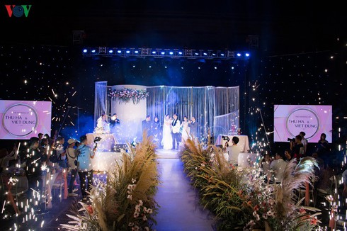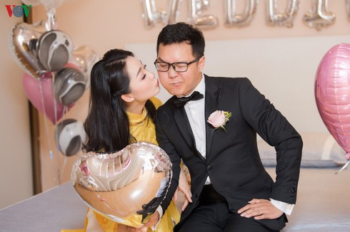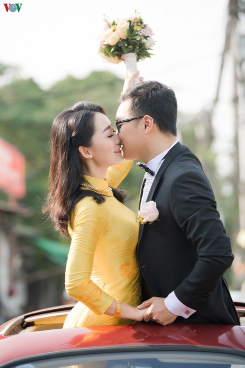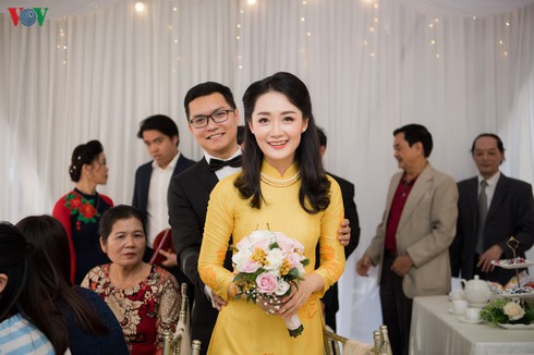 Còn chú rể Việt Dũng làm việc trong lĩnh vực nghiên cứu khoa học tại Đại học Bách khoa.