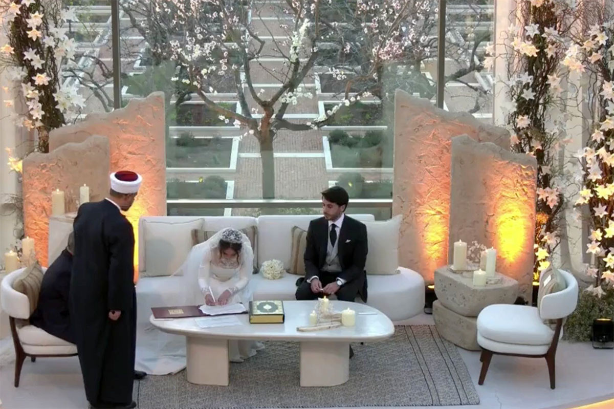 Công chúa và hôn phu đã đọc kinh Koran trước khi ký vào giấy chứng nhận kết hôn trong buổi lễ được truyền trực tiếp một phần trên truyền hình quốc gia. Vua Abdullah ngồi bên con gái trong giây phút trọng đại của cuộc đời cô.
