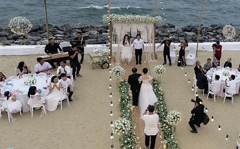 Đám cưới của cặp đôi Xìn - Ri được tổ chức theo phong cách Hàn Quốc |