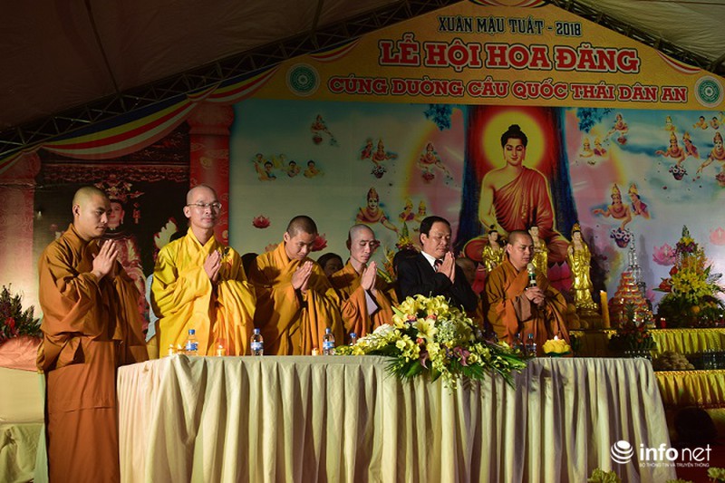 Tham dự lễ hội có các sư thầy cùng phật tử phát tâm thiết lễ cúng dường cầu quốc thái dân an, cầu nguyện cho đất nước thái bình, nhân dân no ấm, cầu nguyện siêu độ cho người đã khuất theo ánh sáng ấm áp mà xả bỏ oan khiên thù hận bước theo con đường giải thoát khổ đau.