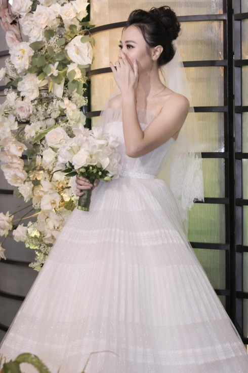 Cô dâu Đàm Trang xúc động trong ngày hạnh phúc của đời mình. |