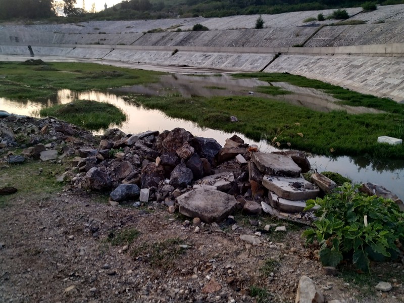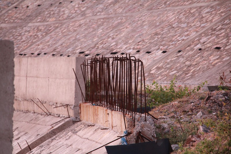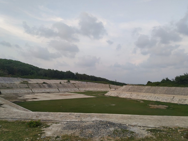 Khu vực lòng hồ còn ngổn ngang đất đá và chưa biết khi nào mới hoàn thành để đưa vào sử dụng.