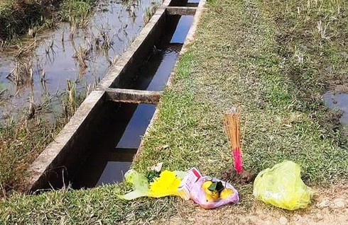 Theo đó, vào khoảng 10h30’ cùng ngày, một số người dân ở bản Thanh Phong 2 (xã Mường Nọc) đi ra đồng thì hoảng hồn phát hiện có 2 cái chân người thò lên từ mương nước được làm bằng bêtông.