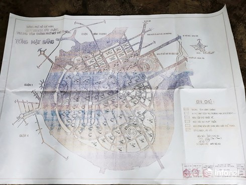 | Bản sao tấm bản đồ quy hoạch 1/5.000 KĐTM Thủ Thiêm hiện ông Lung vẫn đang lưu giữ. |