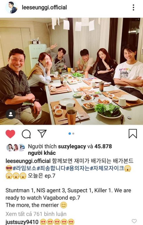 Lee Seung Gi, người đóng cặp với Suzy trong phim, Shin Sung Rok và nam diễn viên đóng vai cơ phó đều đăng Instagram chúc mừng sinh nhật cô nàng.