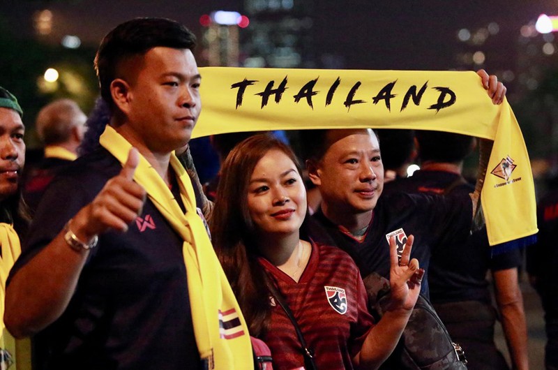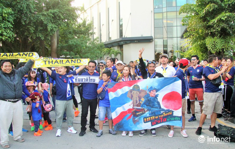 Vào khoảng 16h ngày 19/11, rất đông đảo CĐV Thái Lan đã "tập kết" gần khu vực SVĐ Mỹ Đình để vào sân cổ vũ cho các chàng trai của họ đấu với đội tuyển Việt Nam trong khuôn khổ vòng loại thứ hai World Cup 2022. |